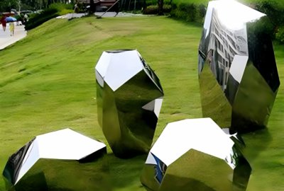 這款鏡面不銹鋼幾何形石頭雕塑以其簡(jiǎn)潔的線條和光澤的表面,為現(xiàn)代家居或辦公室?guī)?lái)一種簡(jiǎn)約而時(shí)尚的裝飾效果。幾何形狀的設(shè)計(jì),既具有現(xiàn)代感,又易于與各種環(huán)境相融合。