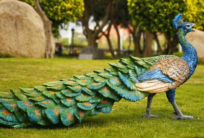 不銹鋼孔雀雕塑,就是神鳥鳳凰。在神話典籍《山海經》中記載:有鳥焉,不銹鋼景觀孔雀雕塑如雞,五采而文,名曰鳳凰。在我們的文化中,一般都認為鳳凰是孔雀雕塑之王,因而有百鳥朝鳳的典故和說法。在我們的古代神話中,有一種不銹鋼噴鍍孔雀雕塑非常相似的神鳥,就是朱雀。